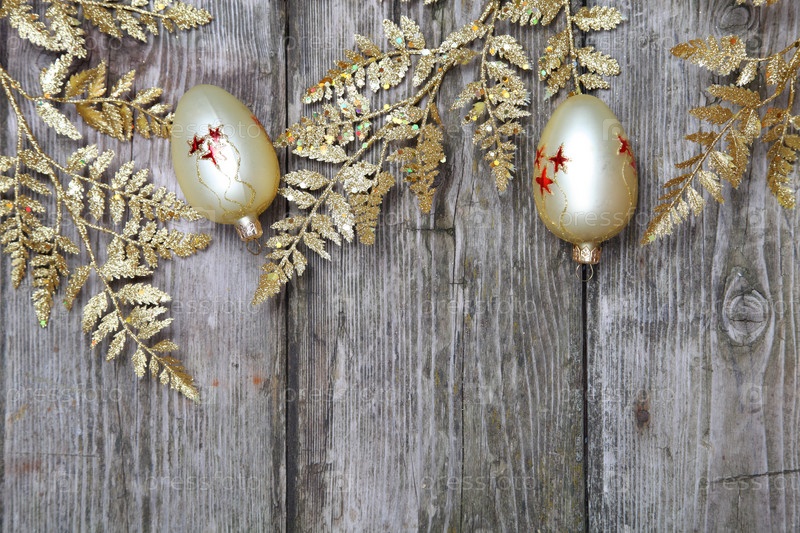 Рождественские украшения: золотые ветки и шарики