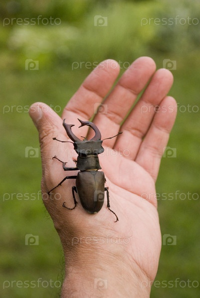 Жук-олень на ладони