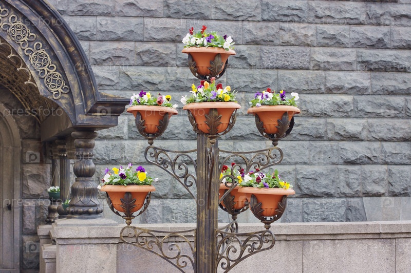 Кашпо с цветами около Храма Христа Спасителя в Москве