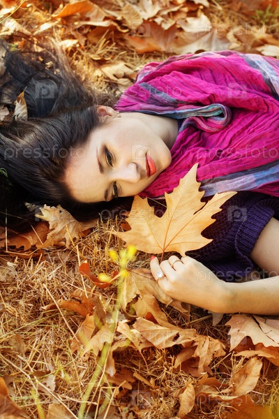 Девушка в осенних листьях