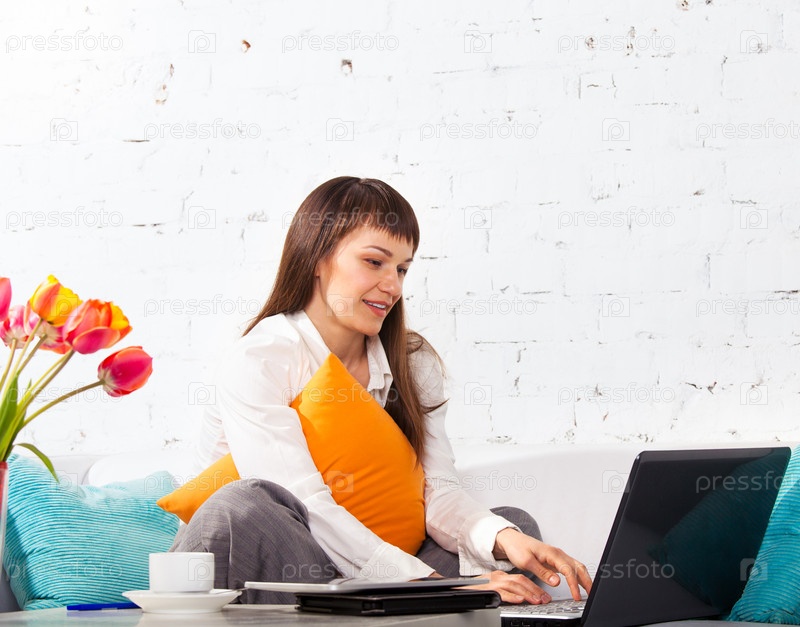 Женщина, работающая на ноутбуке