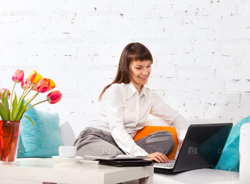 Женщина, работающая на ноутбуке