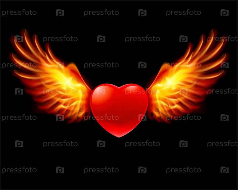 Сердце с огненными крыльями на черном фоне