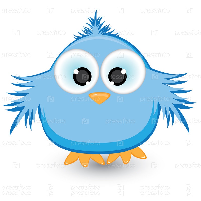 Мультипликационный синий воробей. Иллюстрация на белом фоне