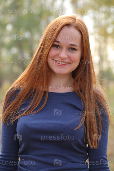 Красивая рыжеволосая девушка в осеннем парке
