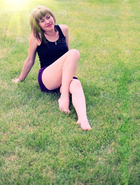 Брюнетка на поле в летний вечер