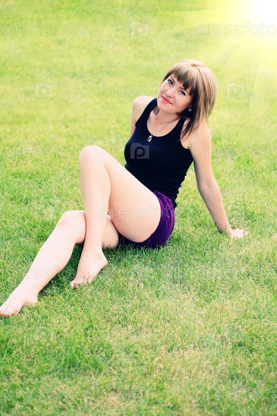 Брюнетка на поле в летний вечер