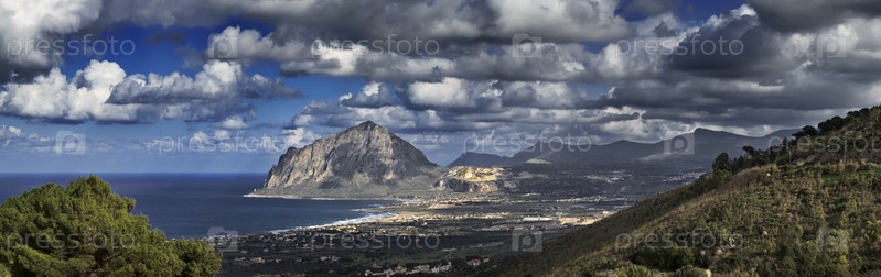 Вид горы Кофано и Тирренского побережья с Эриче (Трапани). Сицилия, Италия