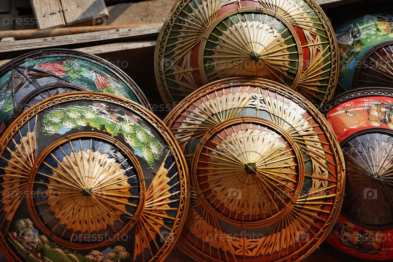 Таиланд, Бангкок, Плавучий рынок, тайские шляпы для продажи на лодке