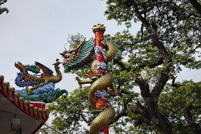 Таиланд, Бангкок, религиозная статуя дракона у буддийского храма