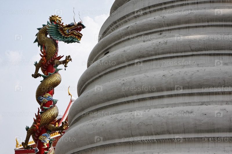 Таиланд, Бангкок, религиозная статуя дракона у буддийского храма