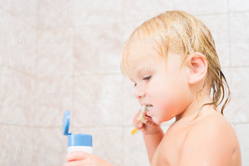 Очаровательный малыш чистит зубы