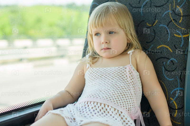 Ребенок в белом платье в автобусе