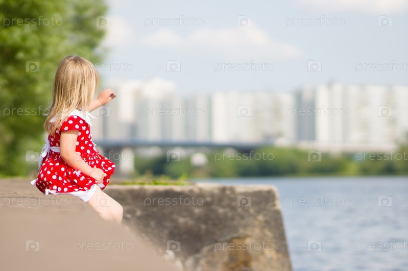 Очаровательная девочка на речном пирсе