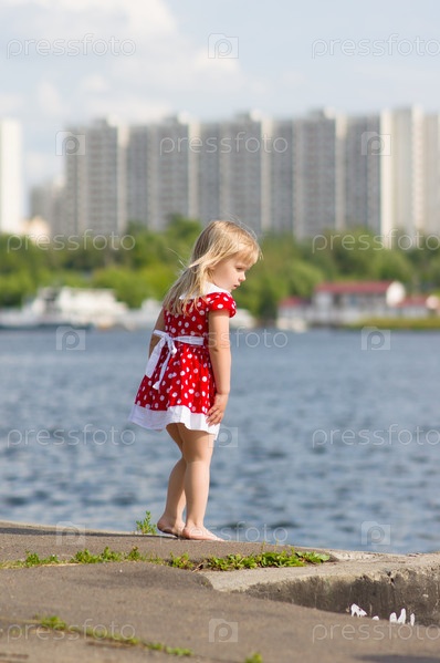 Очаровательная девочка на речном пирсе
