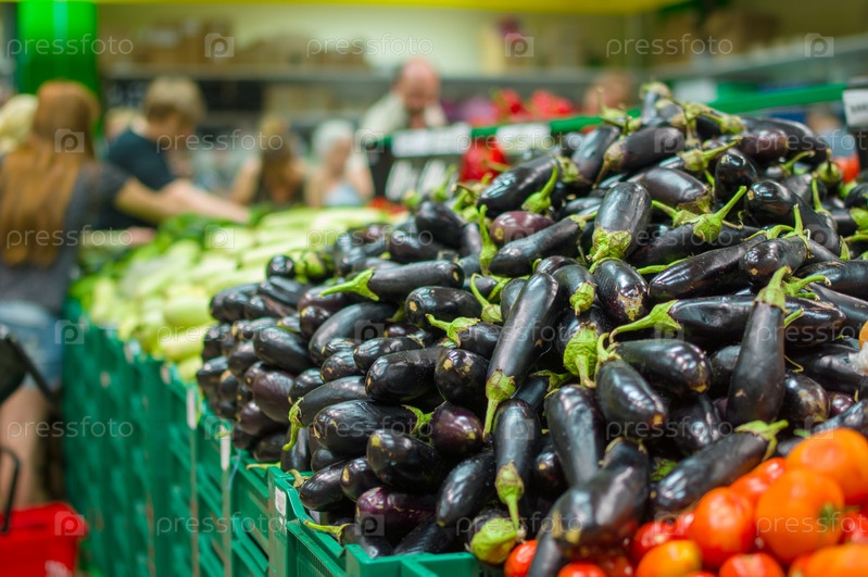 Баклажаны в ящиках в супермаркете