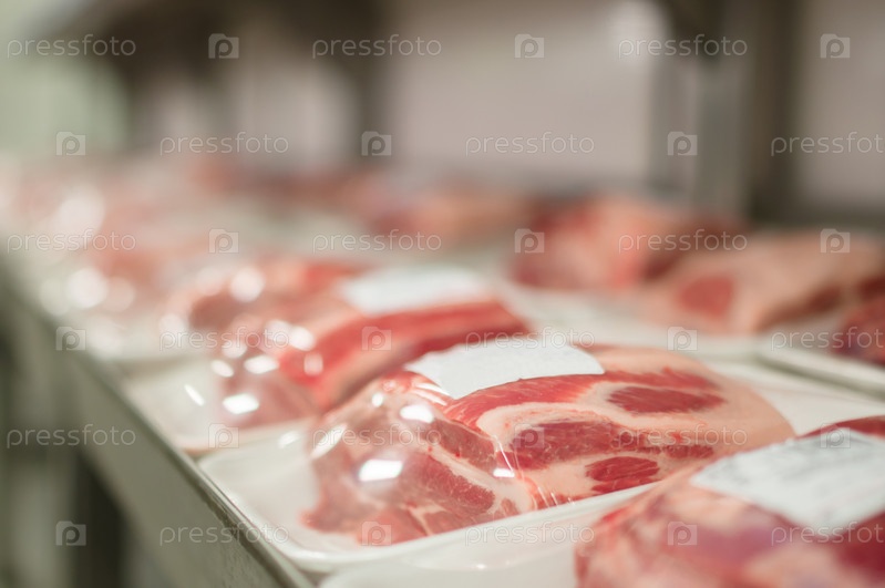 Ломтики говядины в подложках в супермаркете
