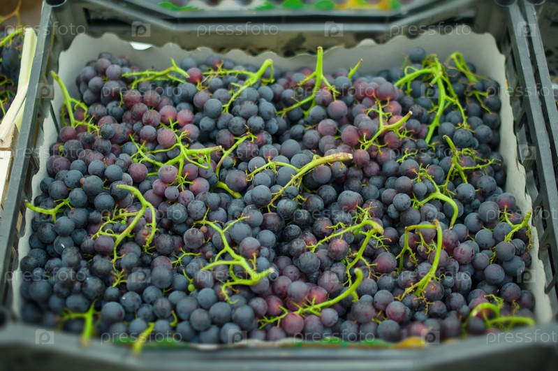 Красный виноград в коробках в супермаркете