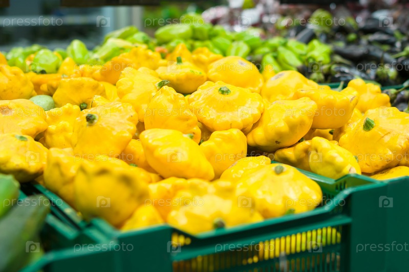 Желтые патиссоны в супермаркете