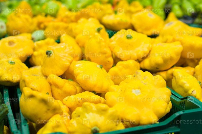 Желтые патиссоны в супермаркете