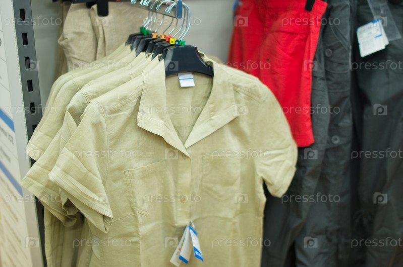 Рубашки и брюки на стендах в торговом центре