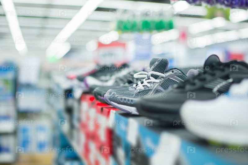 Кроссовки на коробках в торговом центре