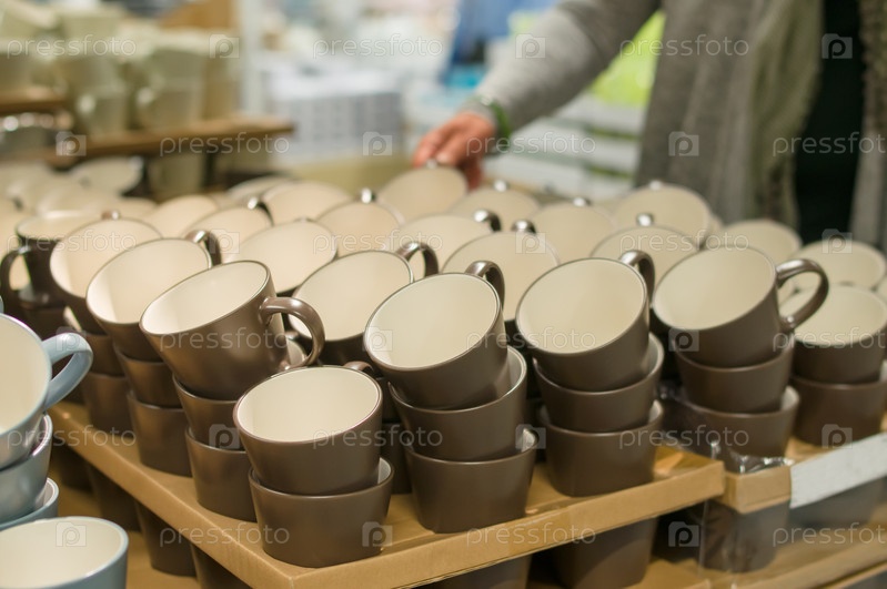 Коричневые чайные чашки в коробках в супермаркете