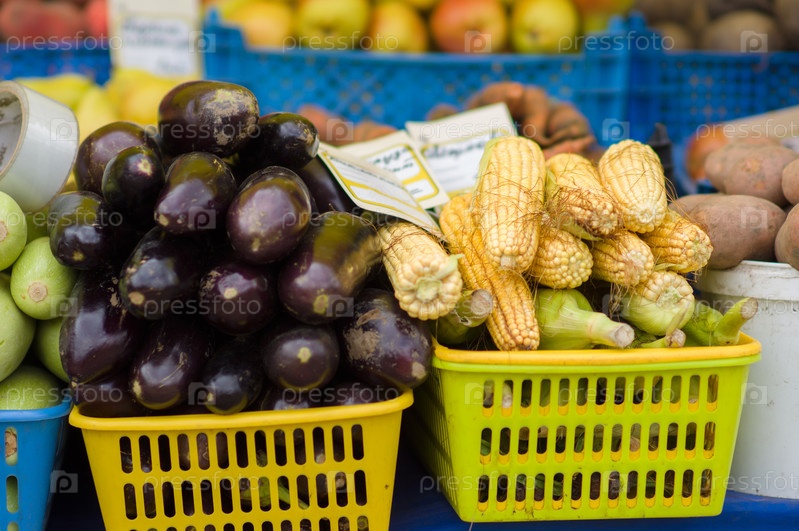 Баклажаны и кукуруза на городском рынке
