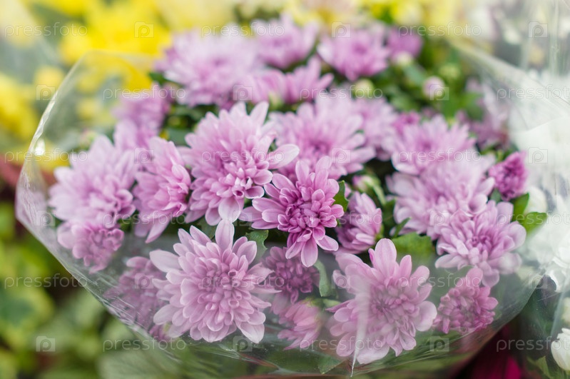 Красивые цветы на полках в садовом магазине