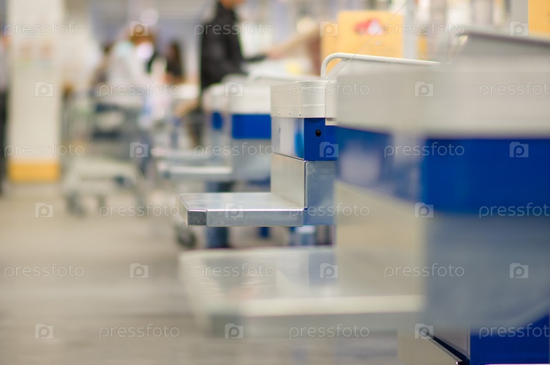 Полка с пакетами для клиентов у кассы в супермаркете