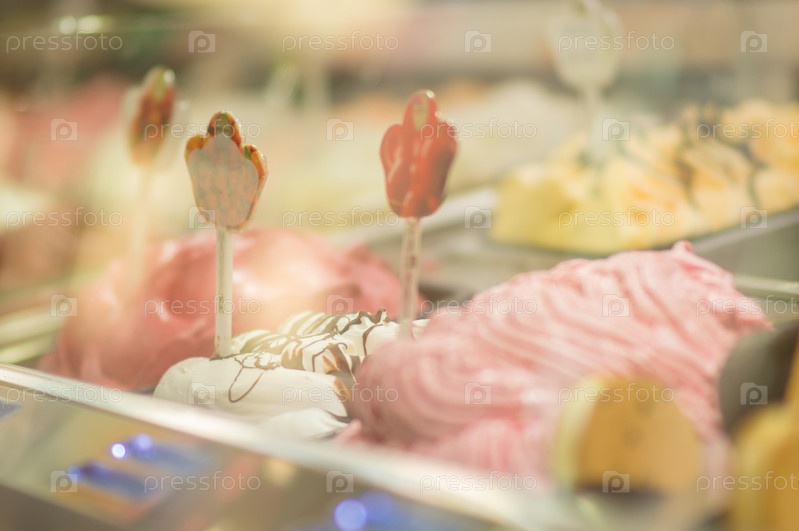 Вкусное мороженое в витрине
