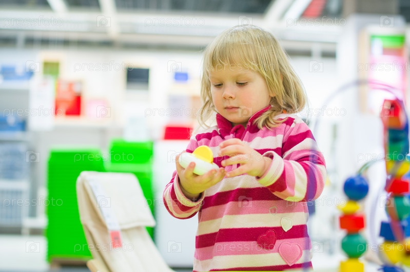 Очаровательный ребенок играет с игрушками в торговом центре