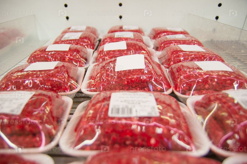 Говяжий фарш в контейнерах в супермаркете