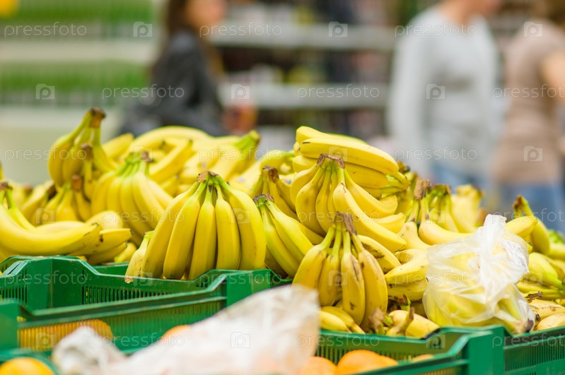 Бананы в ящиках в супермаркете
