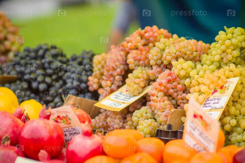 Виноград, гранат и другие фрукты на городском рынке