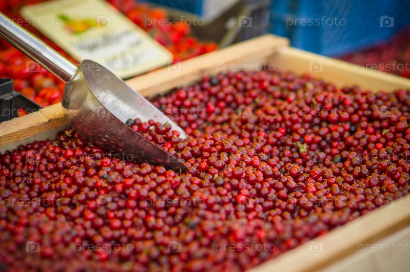 Разные дикие ягоды на столе на городском рынке