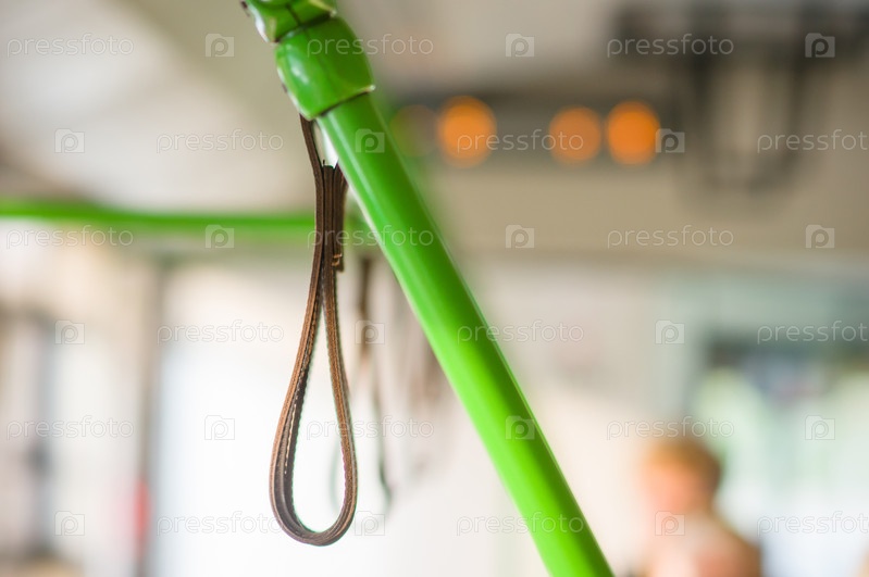 Интерьер современного автобуса. Кожаные ручки для пассажиров