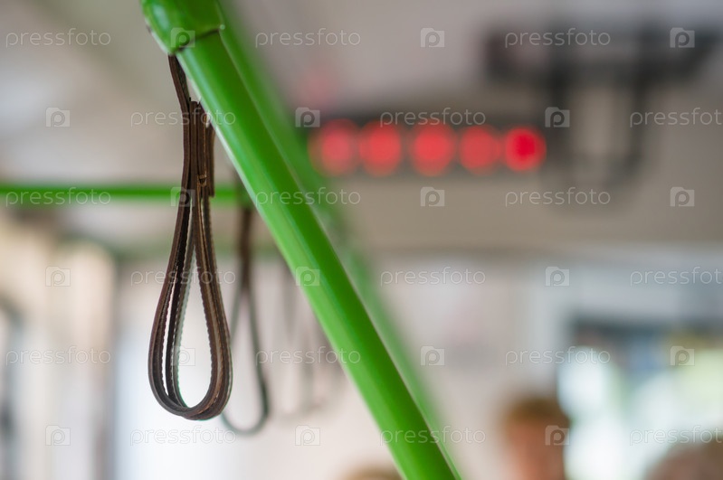 Интерьер современного автобуса. Кожаные ручки для пассажиров