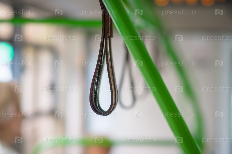 Интерьер современного автобуса. Кожаные ручки для пассажиров