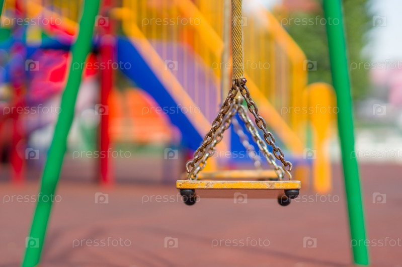 Пустые качели на летней детской площадке