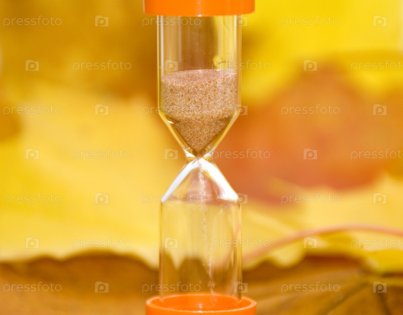 Песочные часы на фоне золотых осенних листьев клена