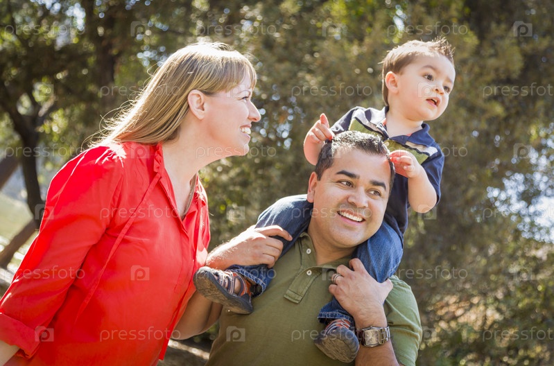 Семья смешанного происхождения проводит день в парке