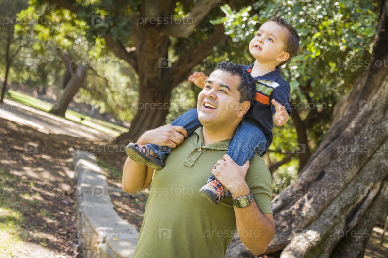 Латиноамериканский отец и сын смешанного происхождения в парке