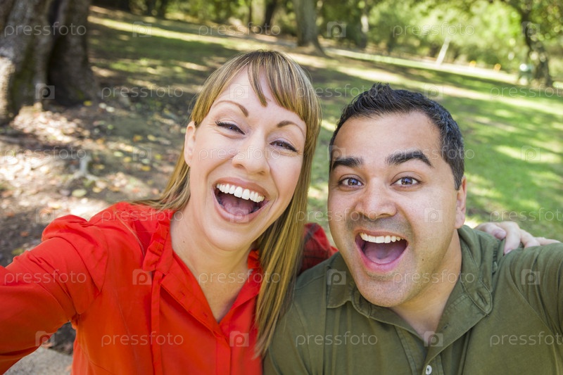 Пара фотографируется в парке