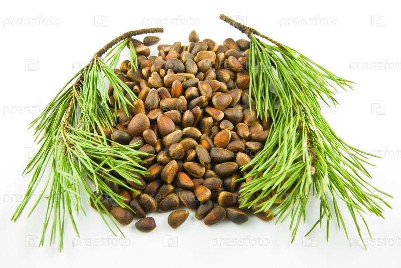 Горсть кедровых орешек и две кедровые ветви