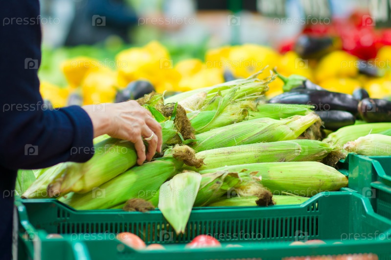 Кукуруза в пластиковых ящиках в супермаркете
