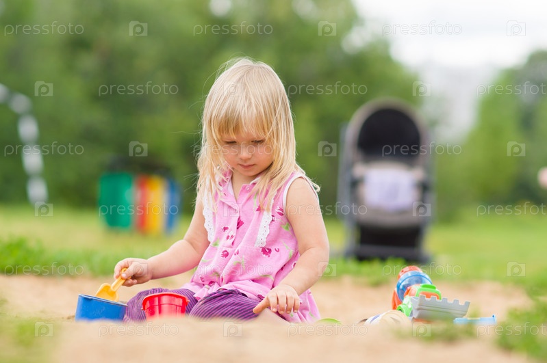 Очаровательная девочка в песочнице