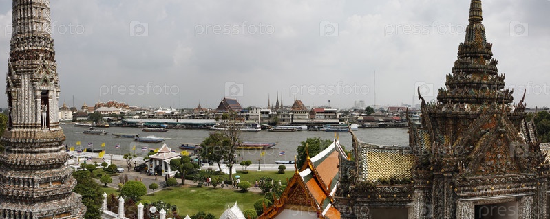 Таиланд, Бангкок, панорамный вид на реку Чао Прая и горизонт города, вид из храма Арун