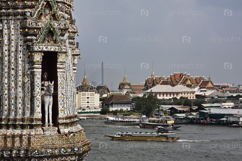 Таиланд, Бангкок, панорамный вид на реку Чао Прая и горизонт города, вид из храма Арун
