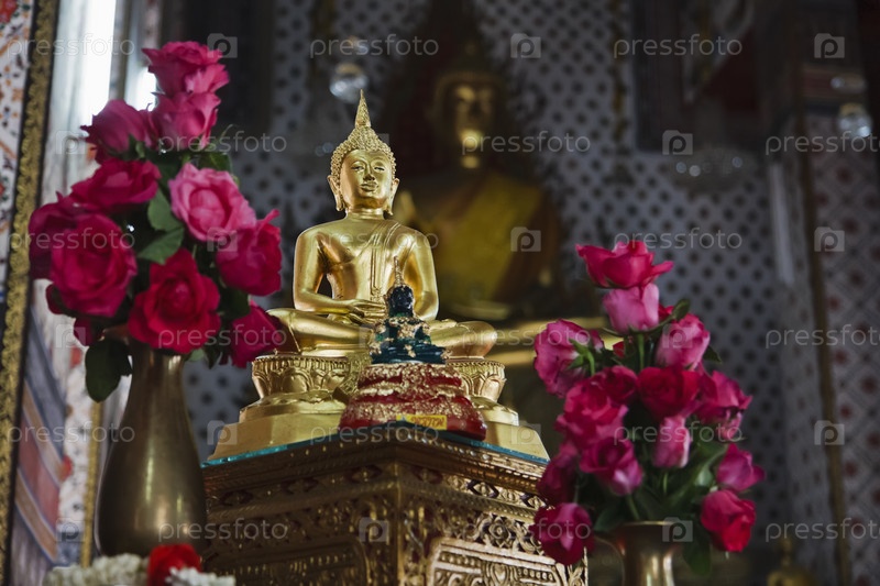 Золотая статуя Будды в храме, Бангкок, Таиланд